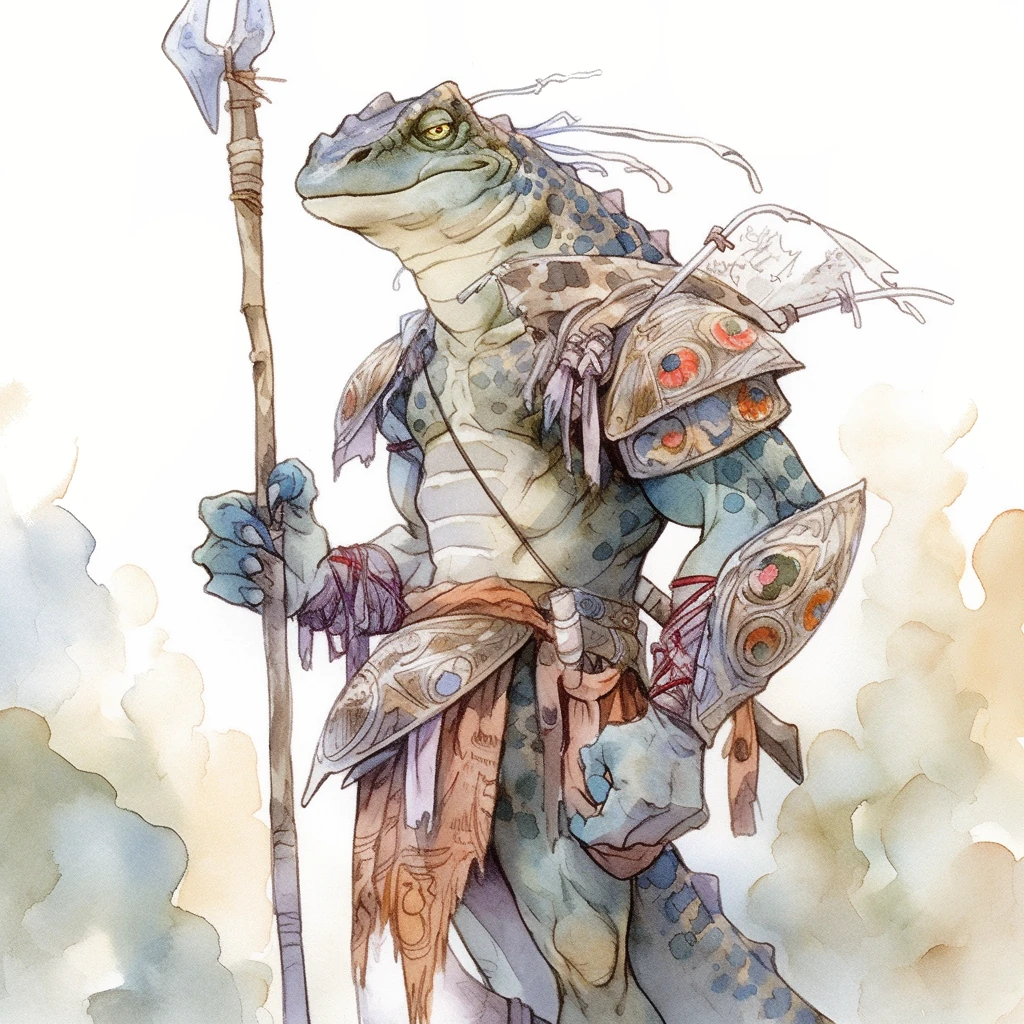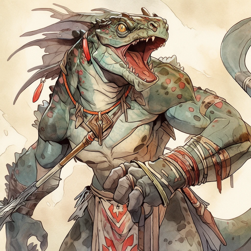 The khaasta are a race of lizard-like creatures who trade with, steal from, and do dirty work for all manner of unsavory individuals across the planes. Their hides are fairly resplendant, each detailed with a resplendent series of small, durable scales, which glint a variety of colours. They have long, powerful tails and blunt lizard-like snouts, with a small crest running the length of the head and back.