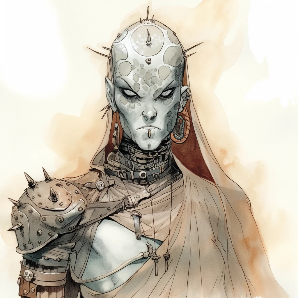 Absence-of-Everything, is an abiorach with skin so reflective it almost appears translucent. They dress entirely in black, with no ornamentation, decoration or frills. They believe that in asceticism and self-denial, we understand the value of what is left, the emptiness makes presence possible.
