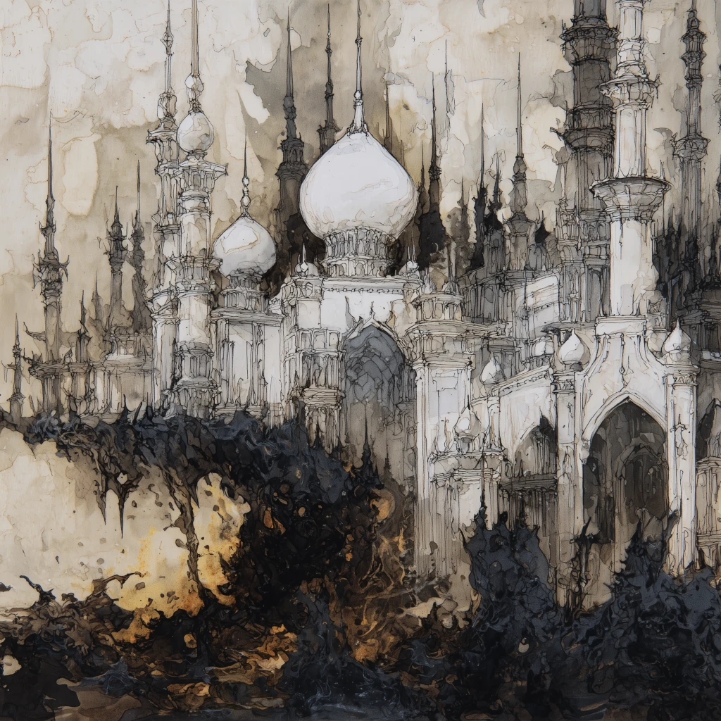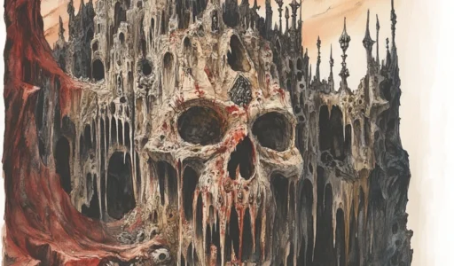 Above the burg, the skies are patrolled by spray‑scarred quasits, their wings stained with salt, and their bodies slick with the corrosive mist that rises from the sea. These little fiends circle ceaselessly, peering down at the waves for any flotsam that has somehow survived the acid long enough to bob to the surface, because in Olhado, anything that does not immediately dissolve is a building material in the making. The imps snatch up the least‑corroded bones, the most intact shells, the occasional half‑melted bit of metal or the rare, acid‑resistant hide, dragging them back to the island’s skeletal cranes and winches where the lesser demons and petitioner castaways labour to bolt, lash, and weld the new arrivals into the growing, sagging structure. That it hasn’t yet sunk under the waves is a testament to Abyssal ingenuity and sheer bloody-mindedness.