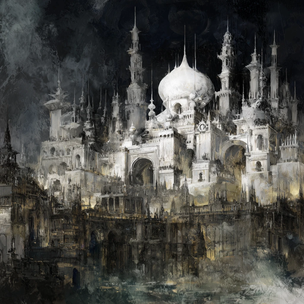 The original structure at the burg’s heart was almost certainly its most beautiful building—a great hall or temple of some kind, its walls constructed from a single species of enormous ridged shell, each panel selected for its colour and fitted together with joints so fine they are nearly invisible. The proportions are vast, the ceilings high enough to accommodate something as large as a dragon perhaps, and the inner walls were once inlaid with scenes in mother-of-pearl that depicted, if you look carefully beneath the damage, a great calm ocean full of gentle light and drifting silver fish.